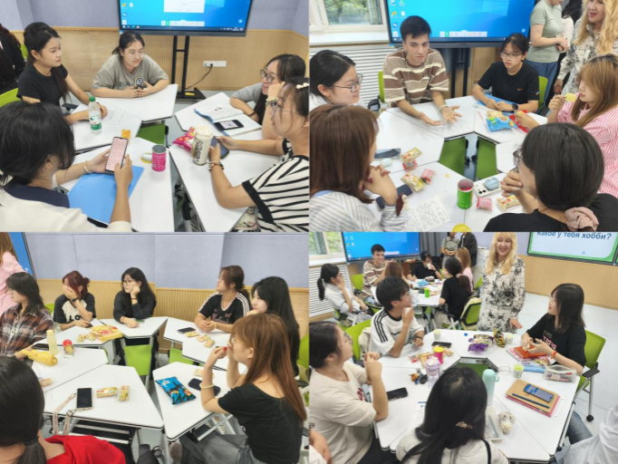 主题讨论环节,学生们根据兴趣自主分组,围绕“兴趣爱好的培养与发展”、“中外兴趣文化差异”等话题展开深入交流。交流过程中,学生们积极尝试俄语对话,两位外教古力娜拉、斯威特兰纳老师全程巡回指导,针对学生的语言表达问题及时纠错、耐心讲解,有效帮助学生提升语言运用的准确性与流畅度。各组讨论结束后,纷纷选派代表上台分享交流成果,学生们的精彩发言赢得现场阵阵掌声,充分展现了我院学子良好的外语素养与精神风貌。最后全体参与人员合影留念,为本次活动画上圆满句号。